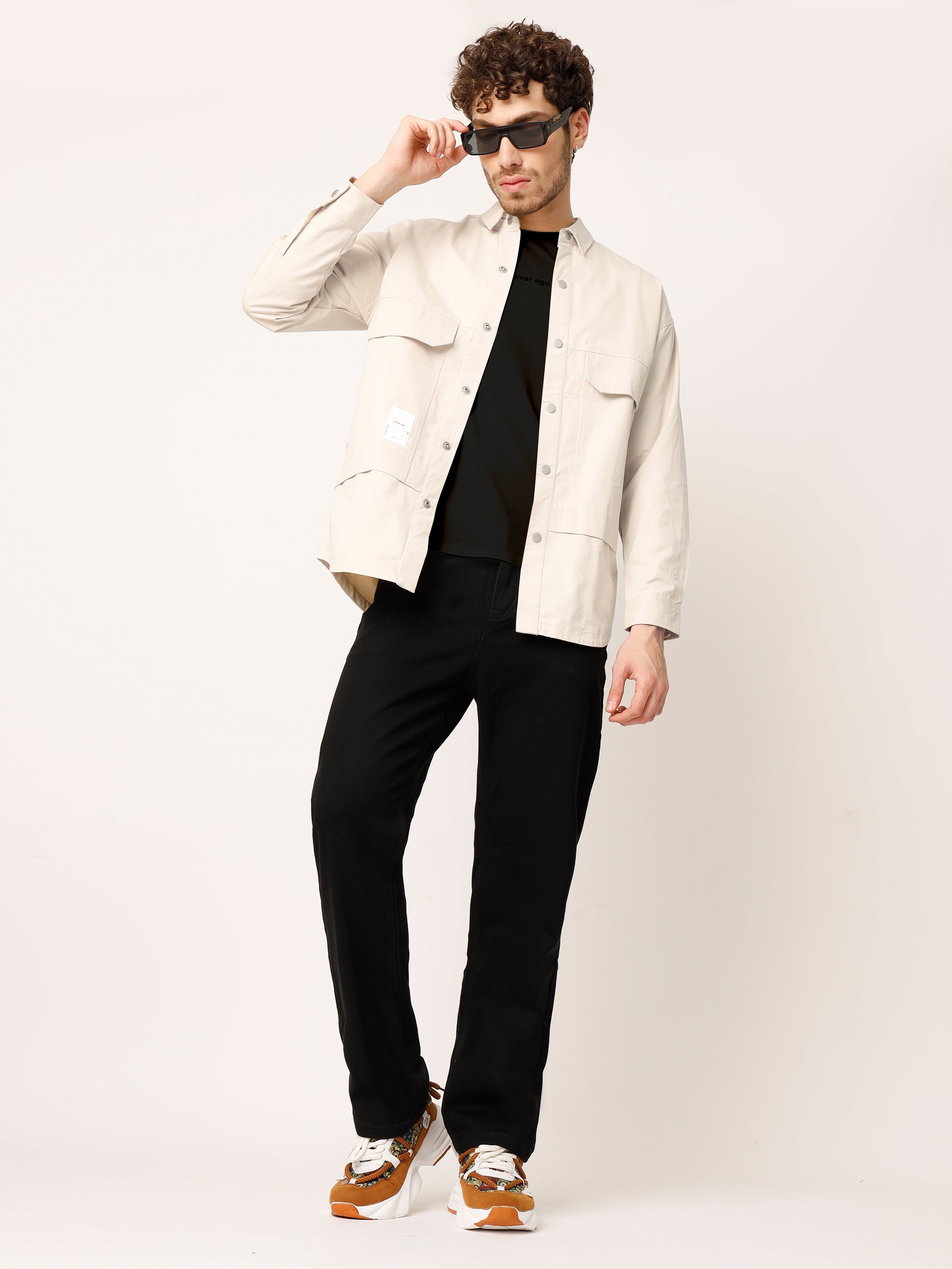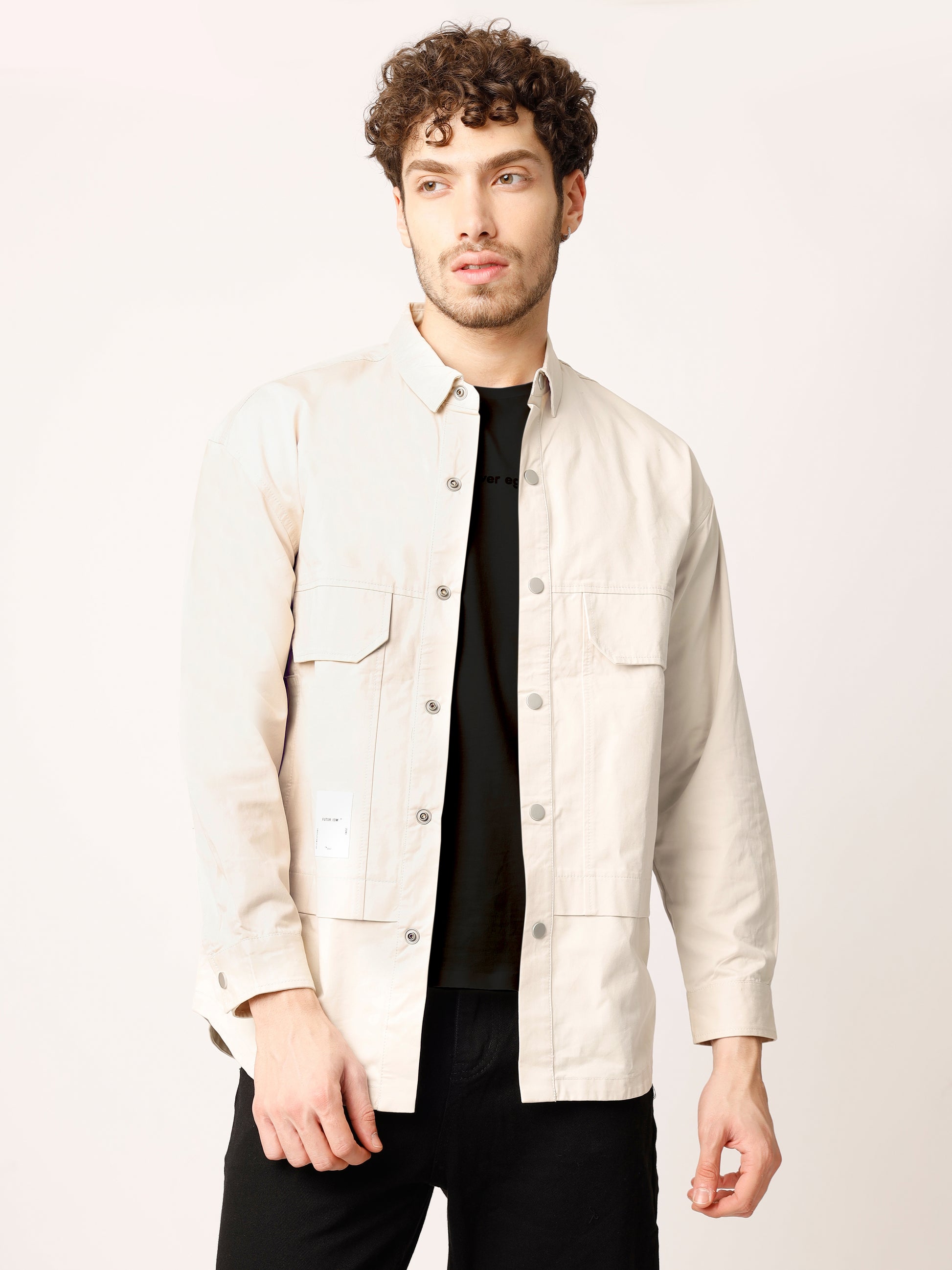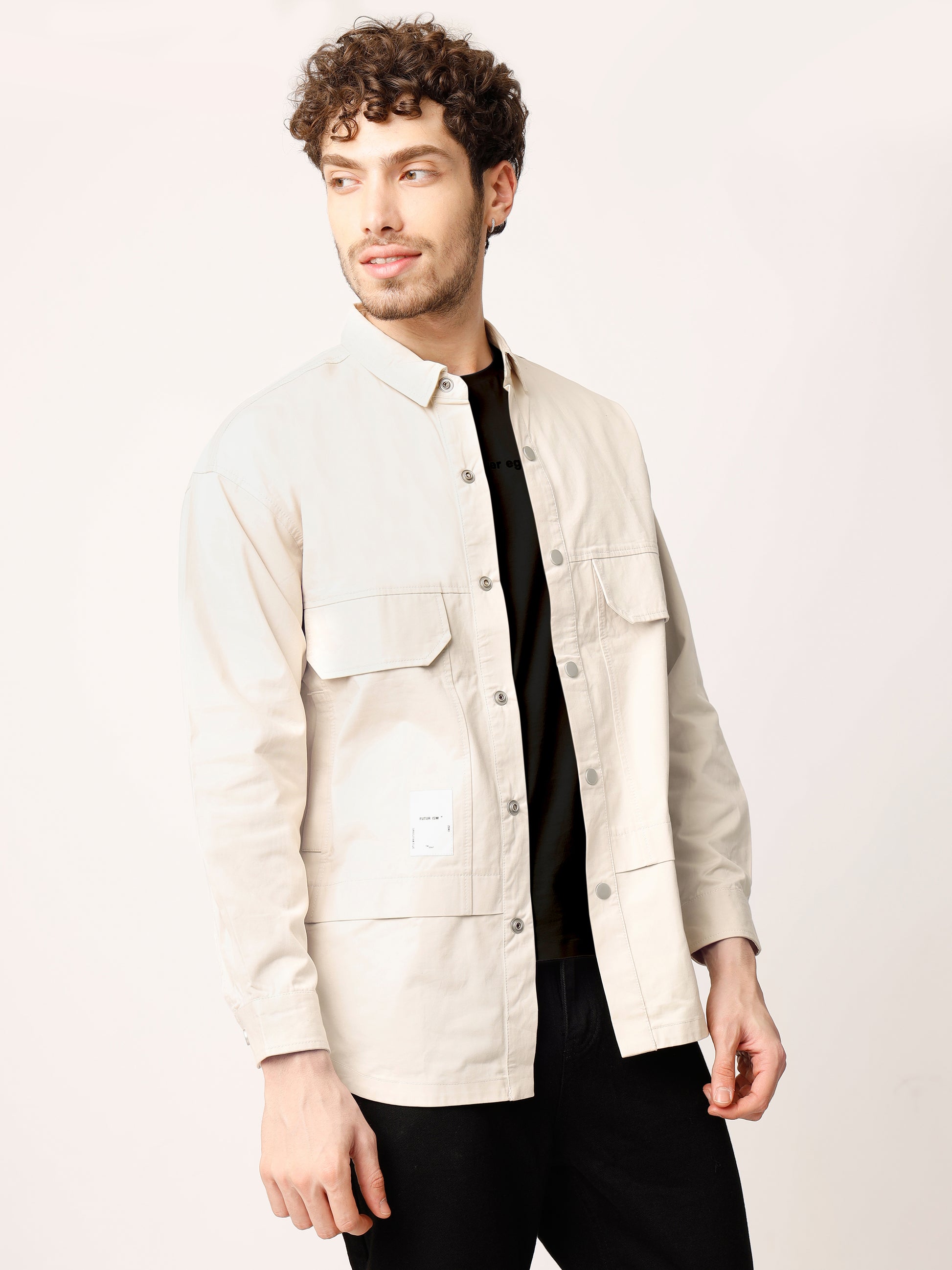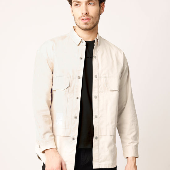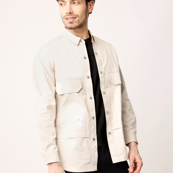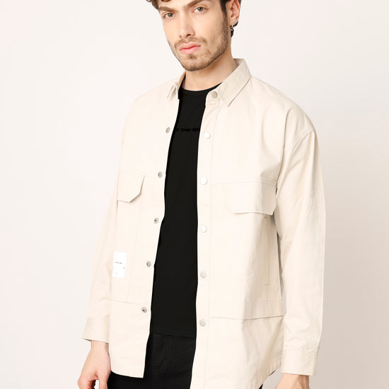 Beige Over Shirt Shacket