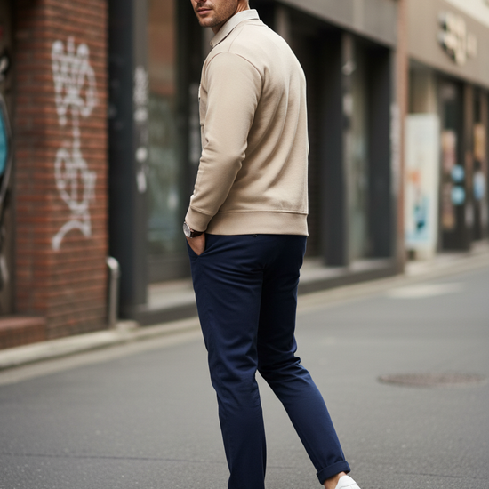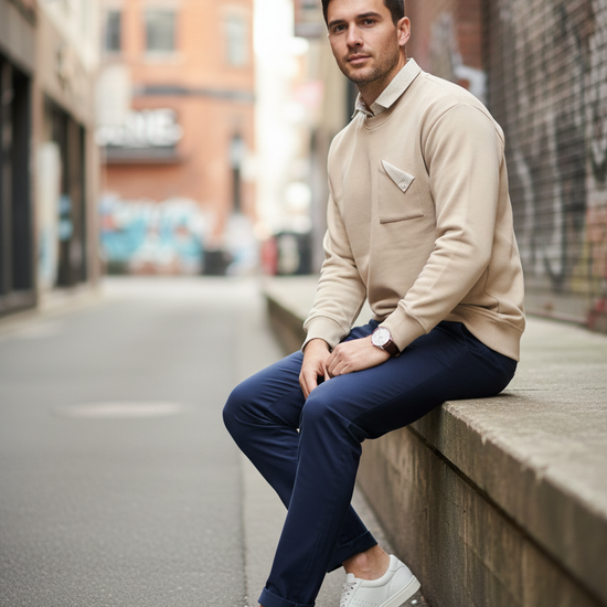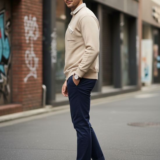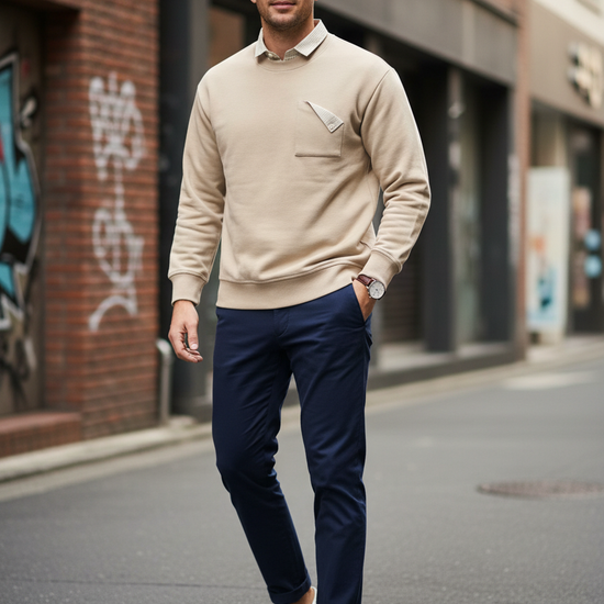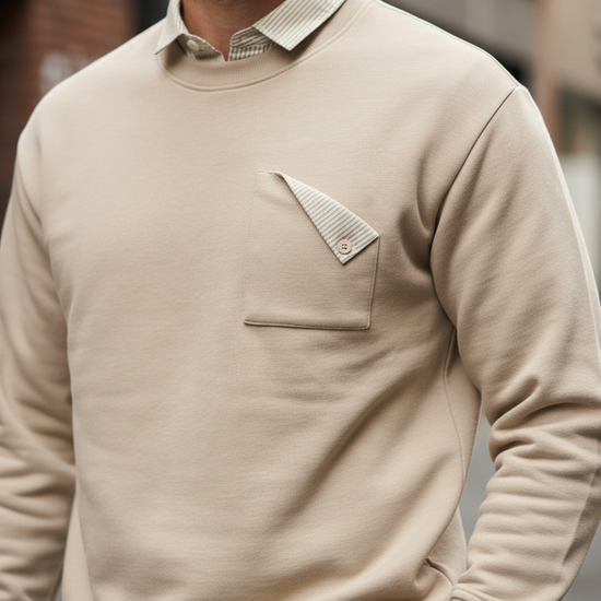 Beige Sweatshirt with Striped Shirt
