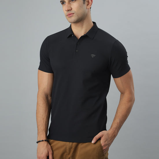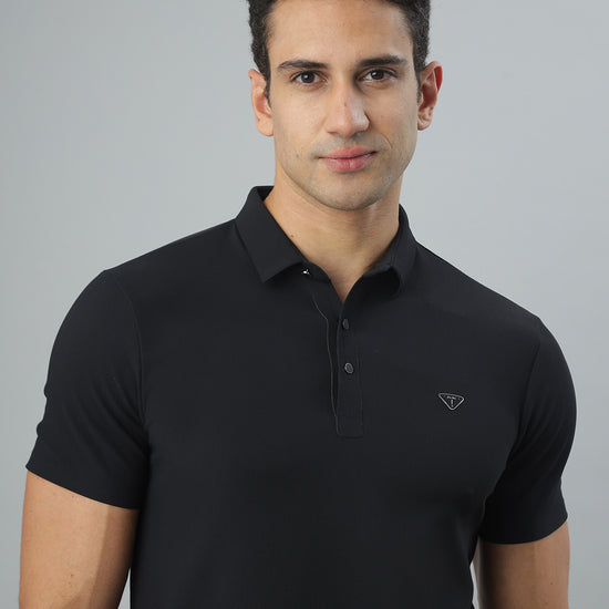 Black Ribbed Polo Tshirt
