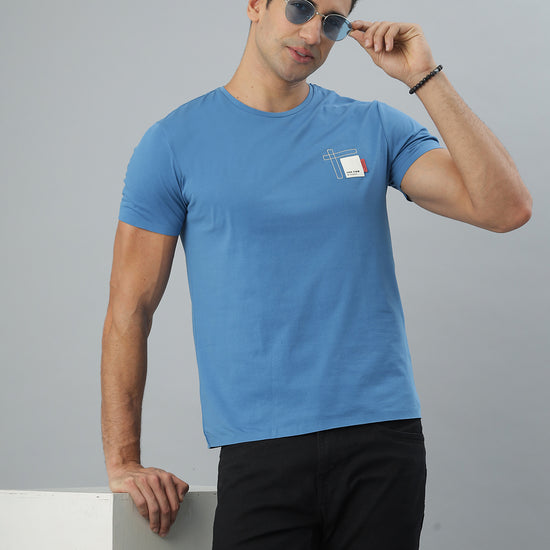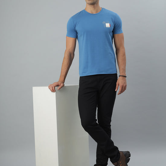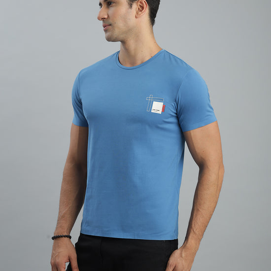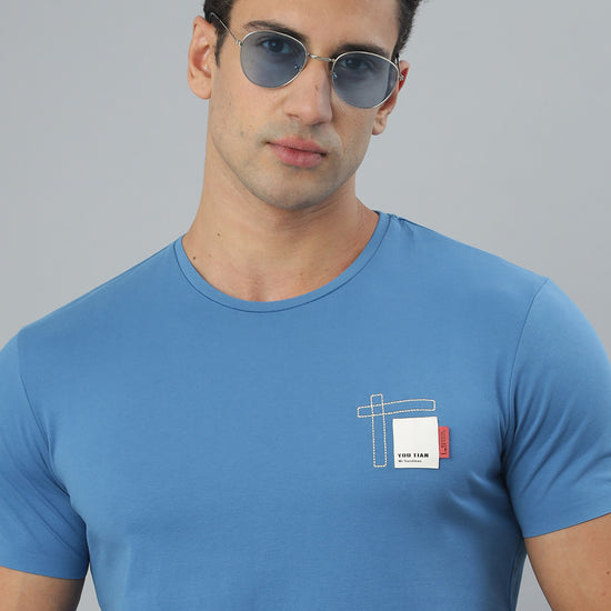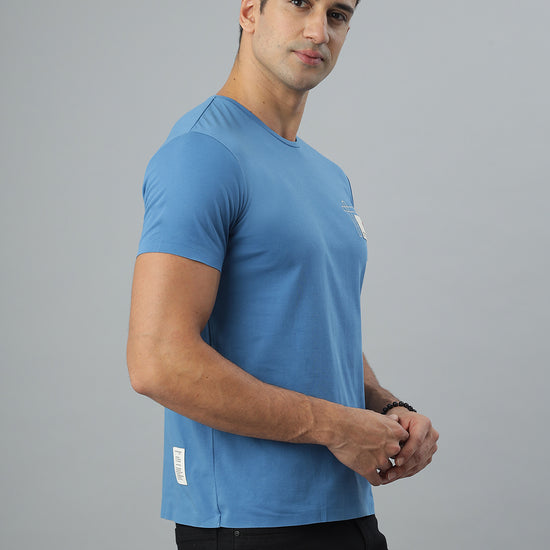 Blue Crew Neck Seamless Tshirt