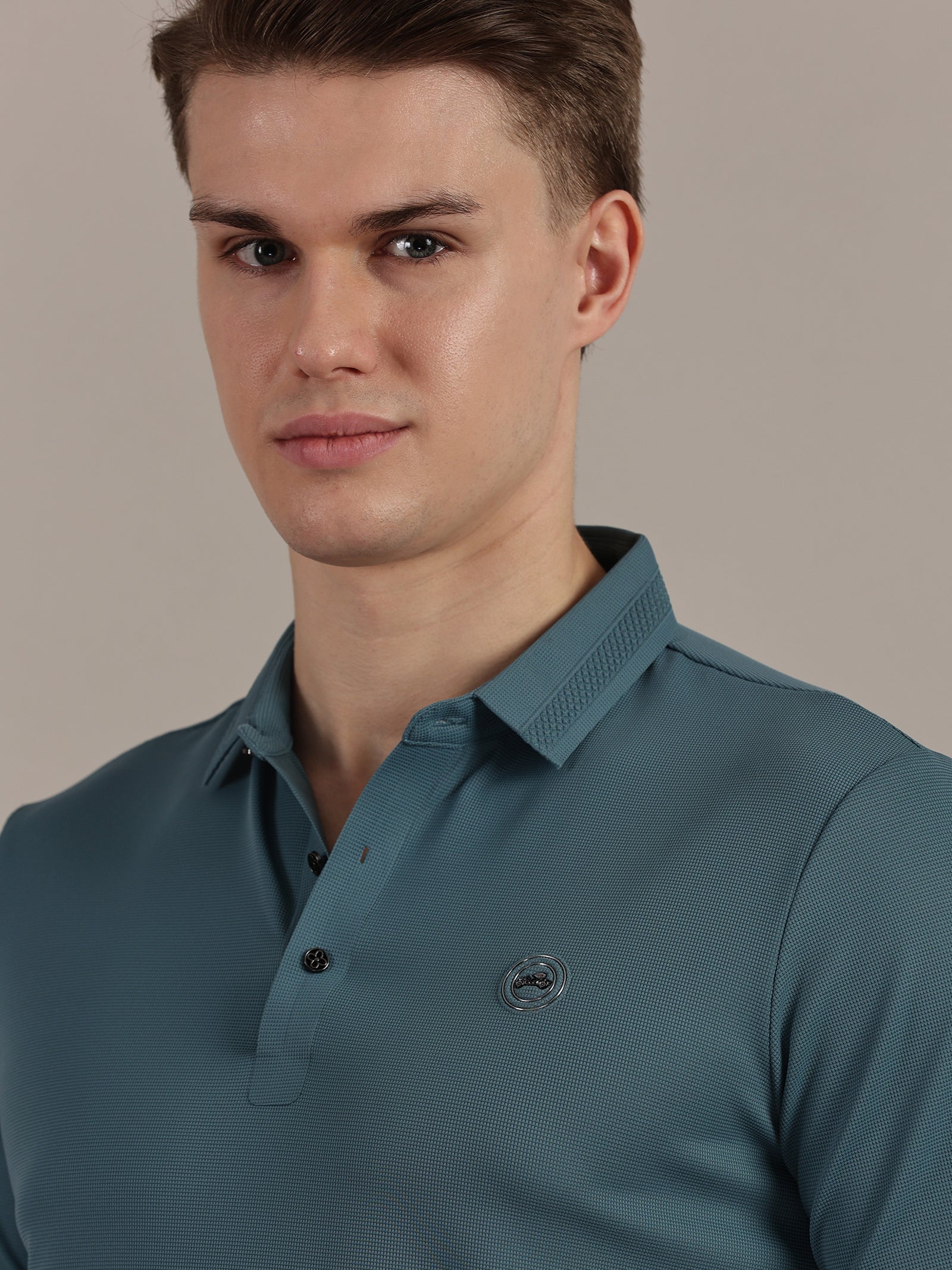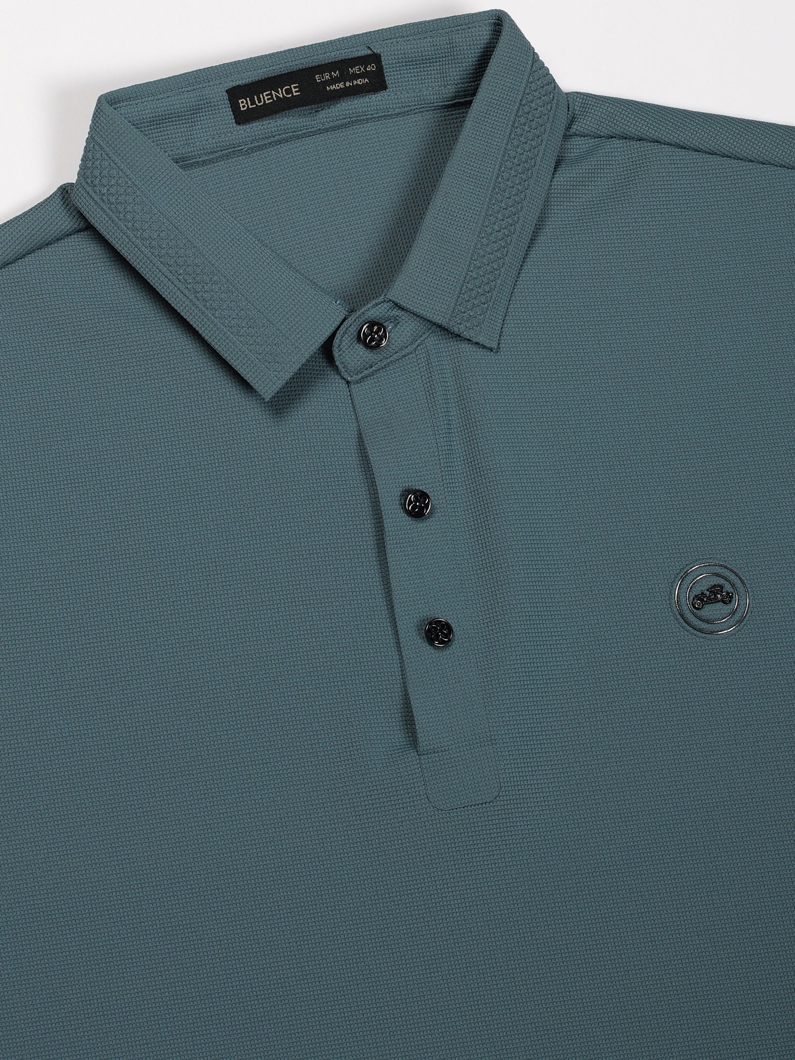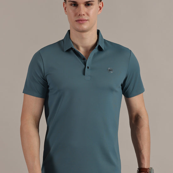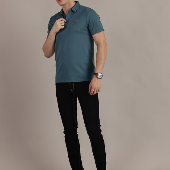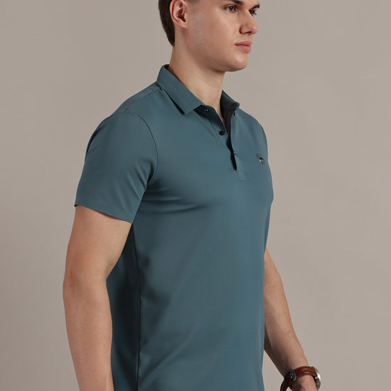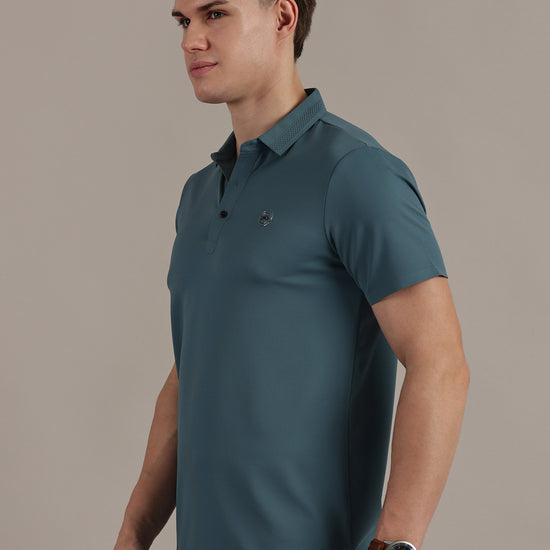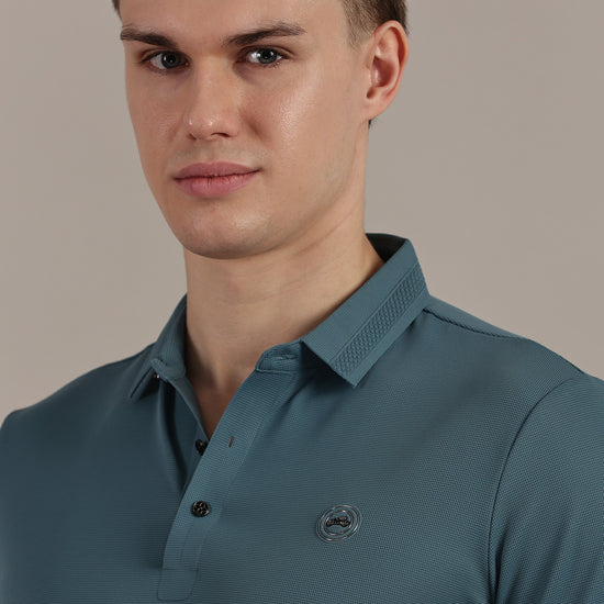 Teal Embossed Collar Polo Tshirt