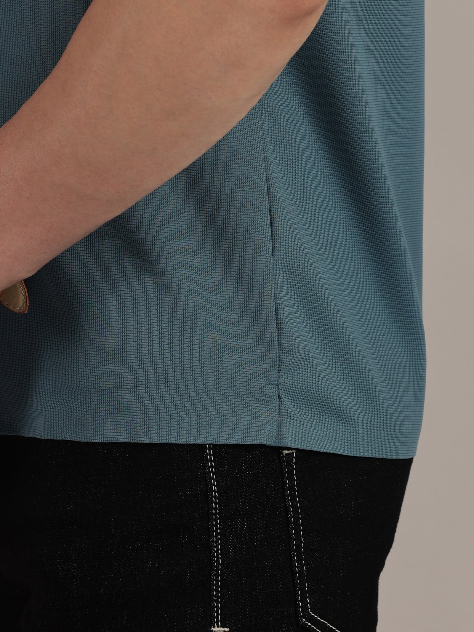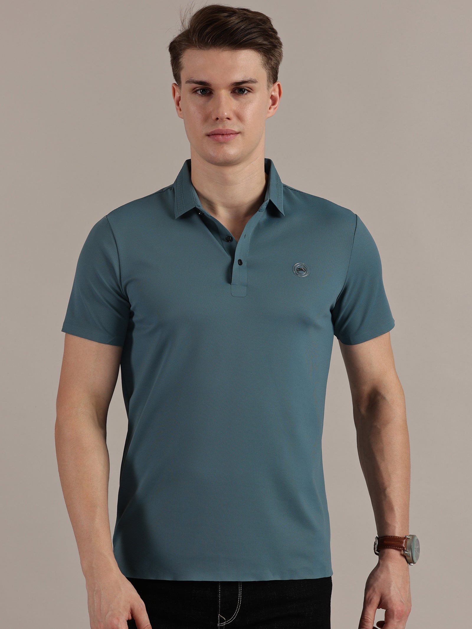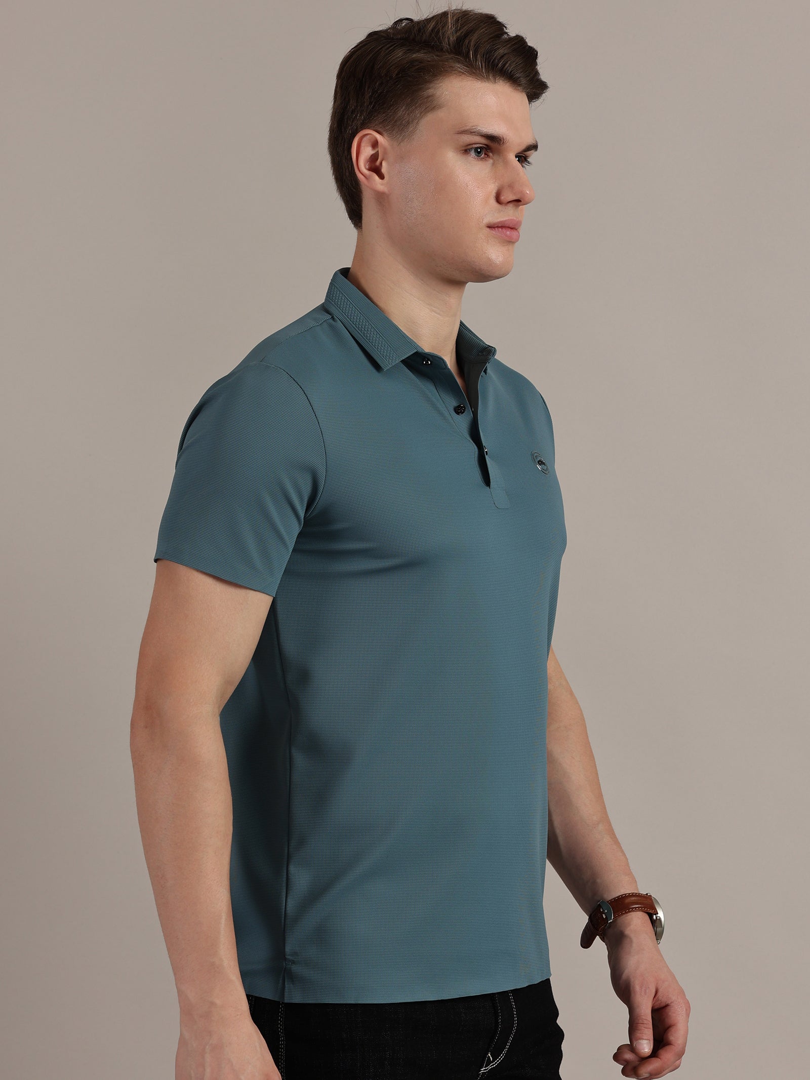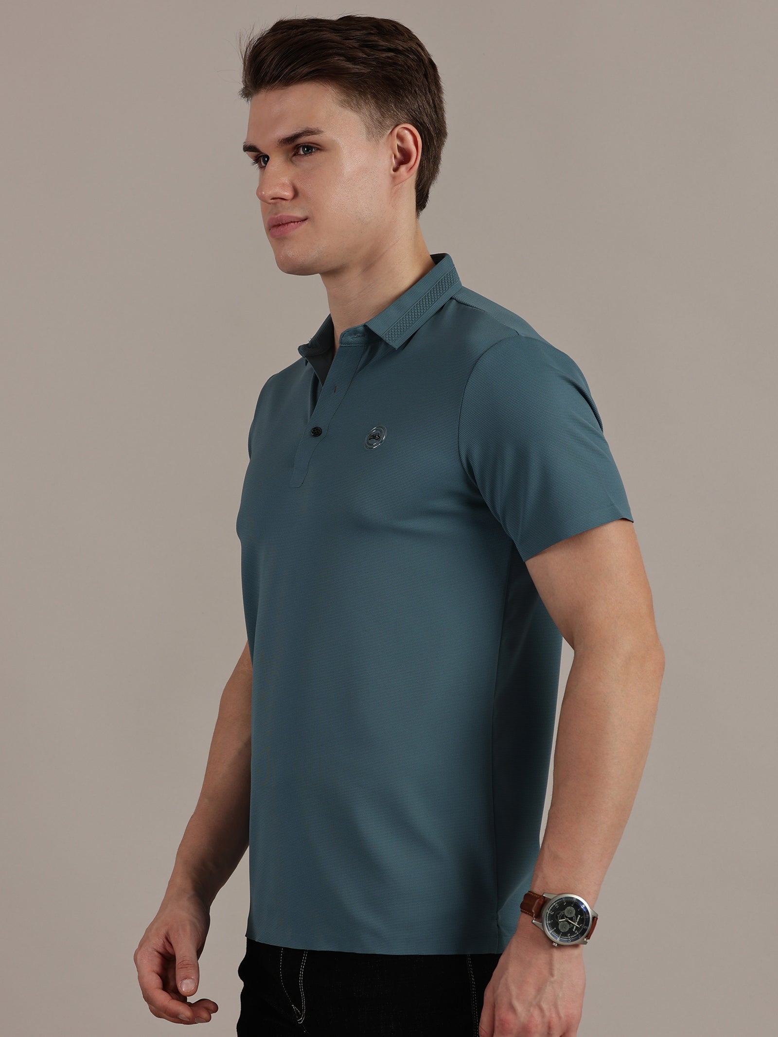 Teal Embossed Collar Polo Tshirt