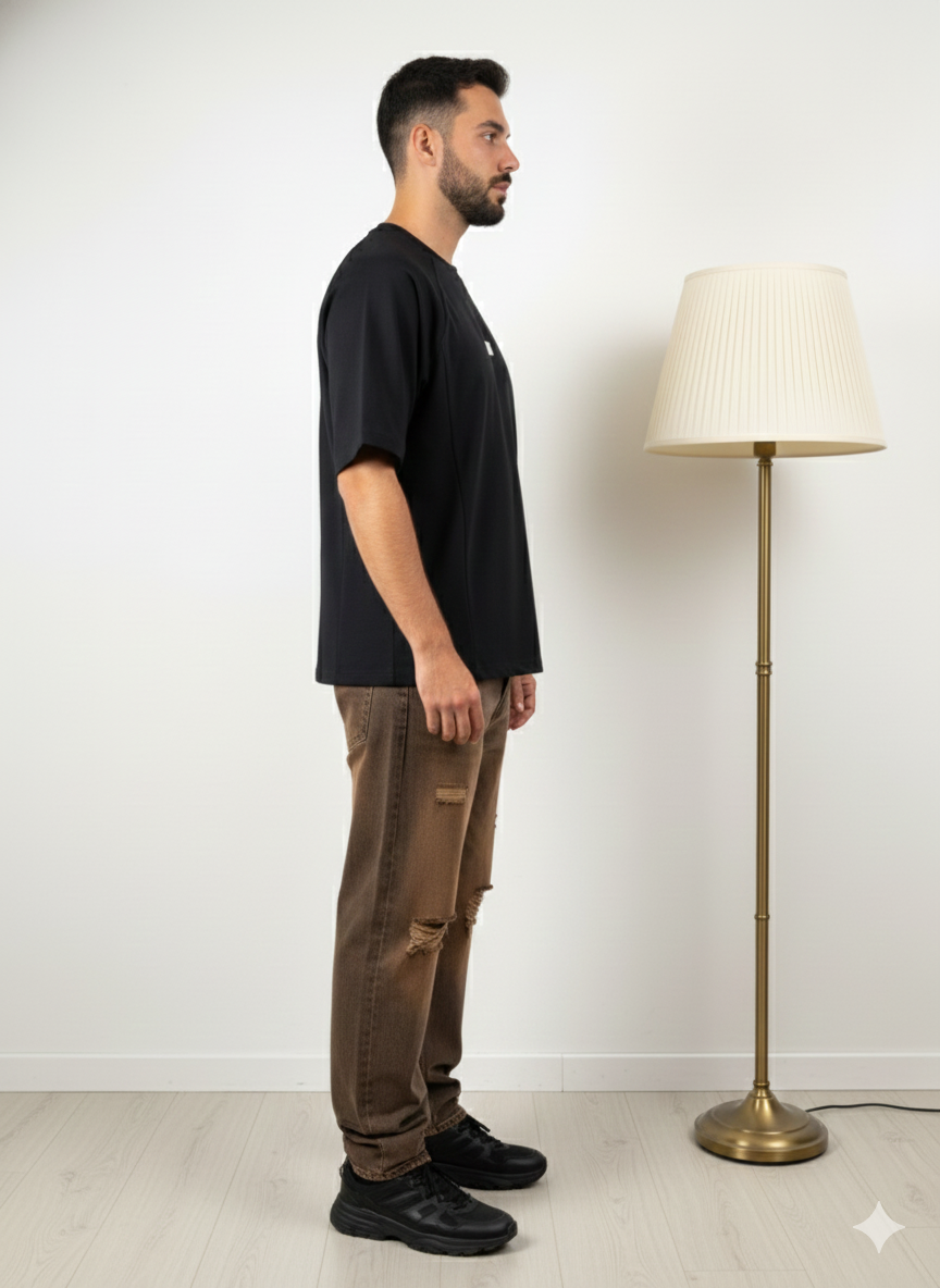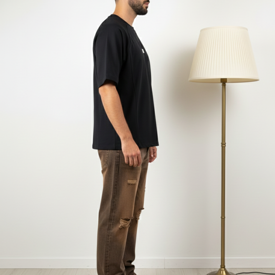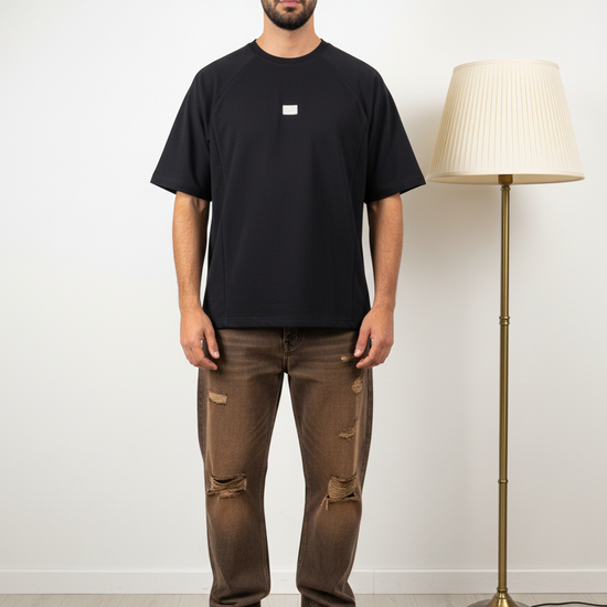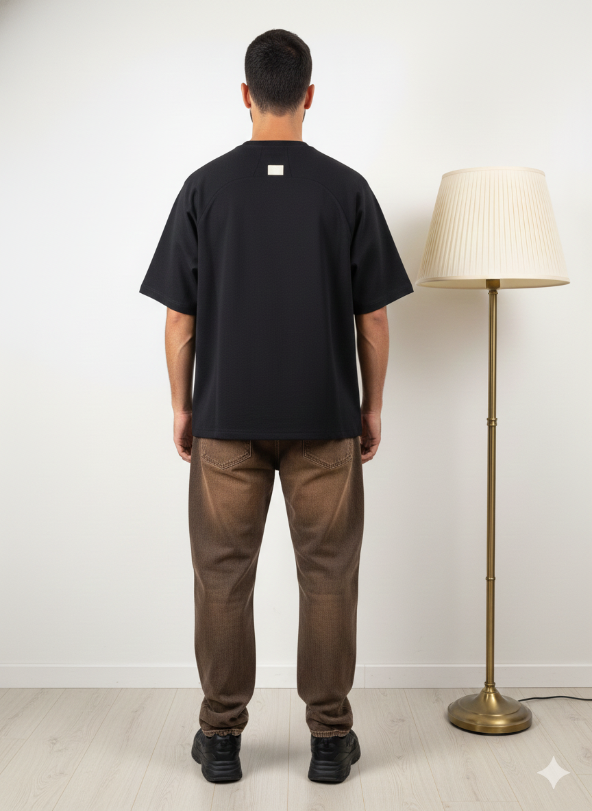 Black Textured Oversized Tshirt