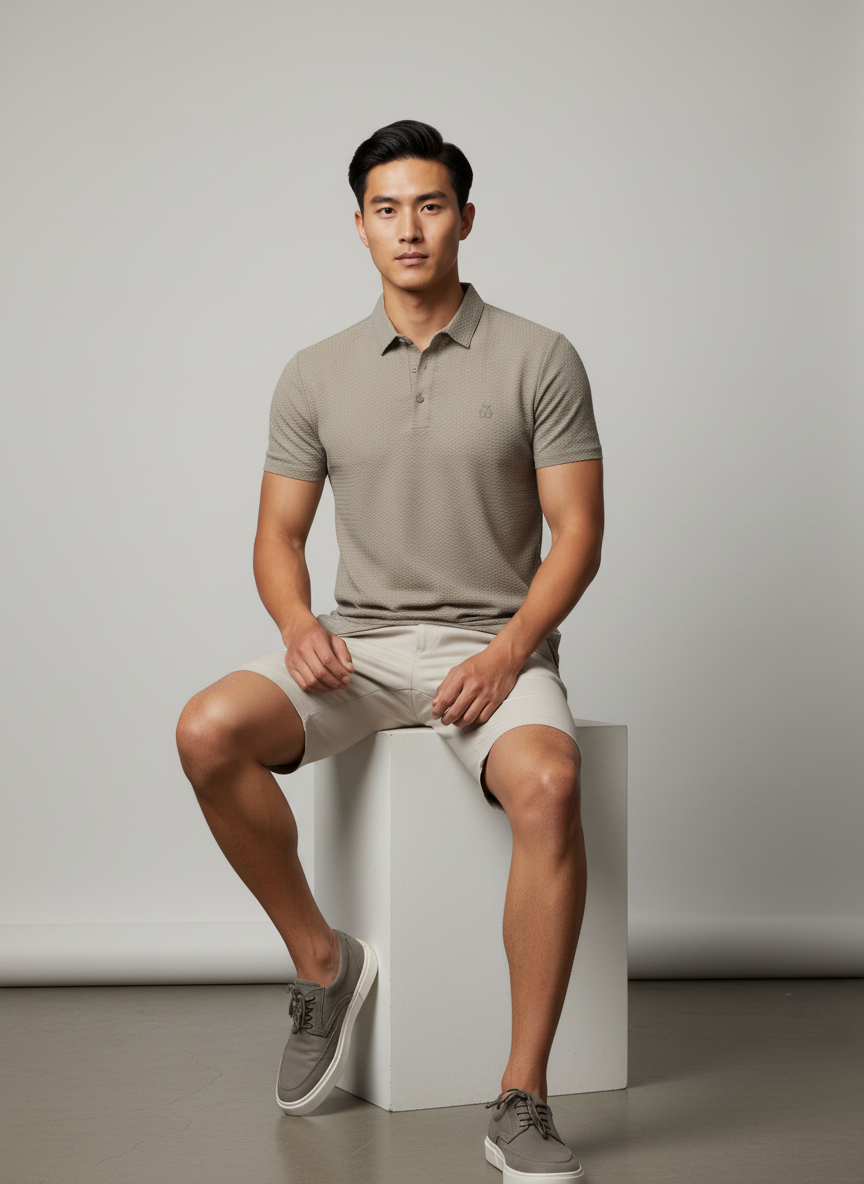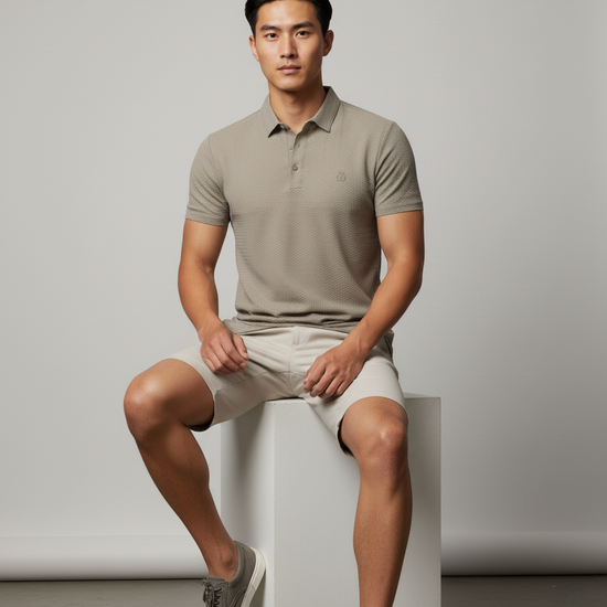 Meet the textured Terrain Polo T-shirt, crafted to stand out in any setting, this shirt elevates your wardrobe with a contemporary silhouette and premium materials. The mustard hue combined with a versatile cut makes it a multipurpose smart casual piece that pairs perfectly with jeans, chinos, or dress pants for a range of looks.