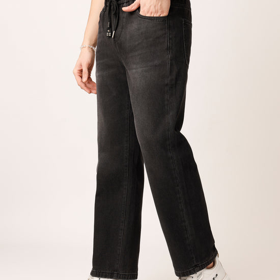 Black Washed Straight Fit Jeans