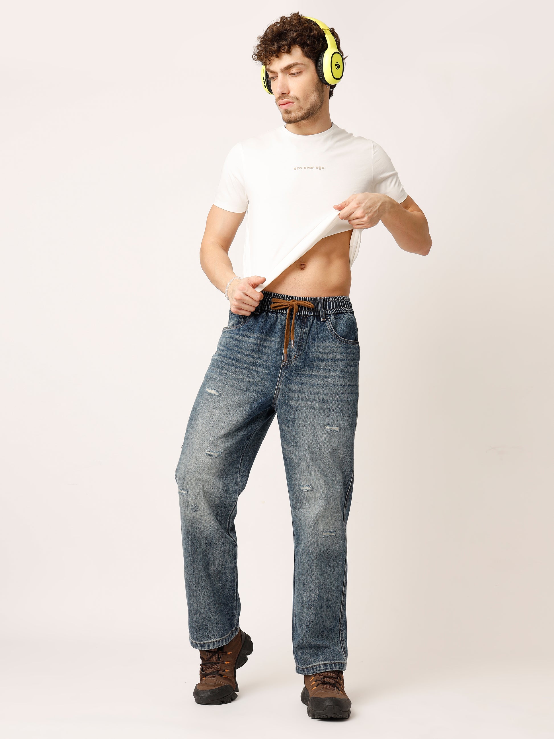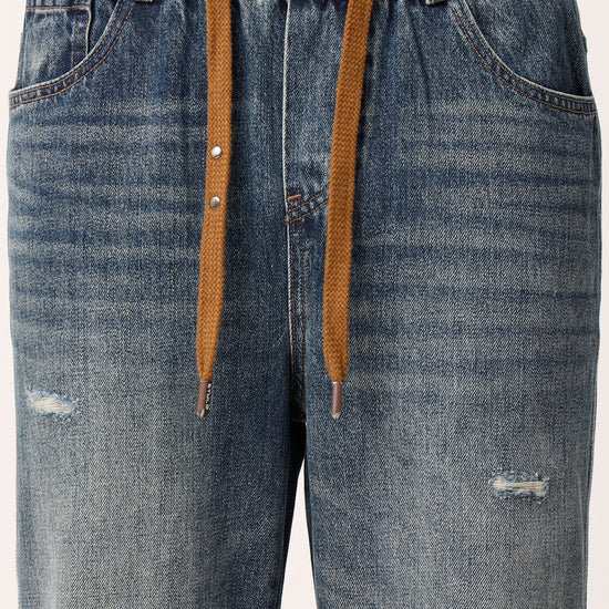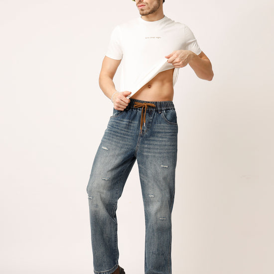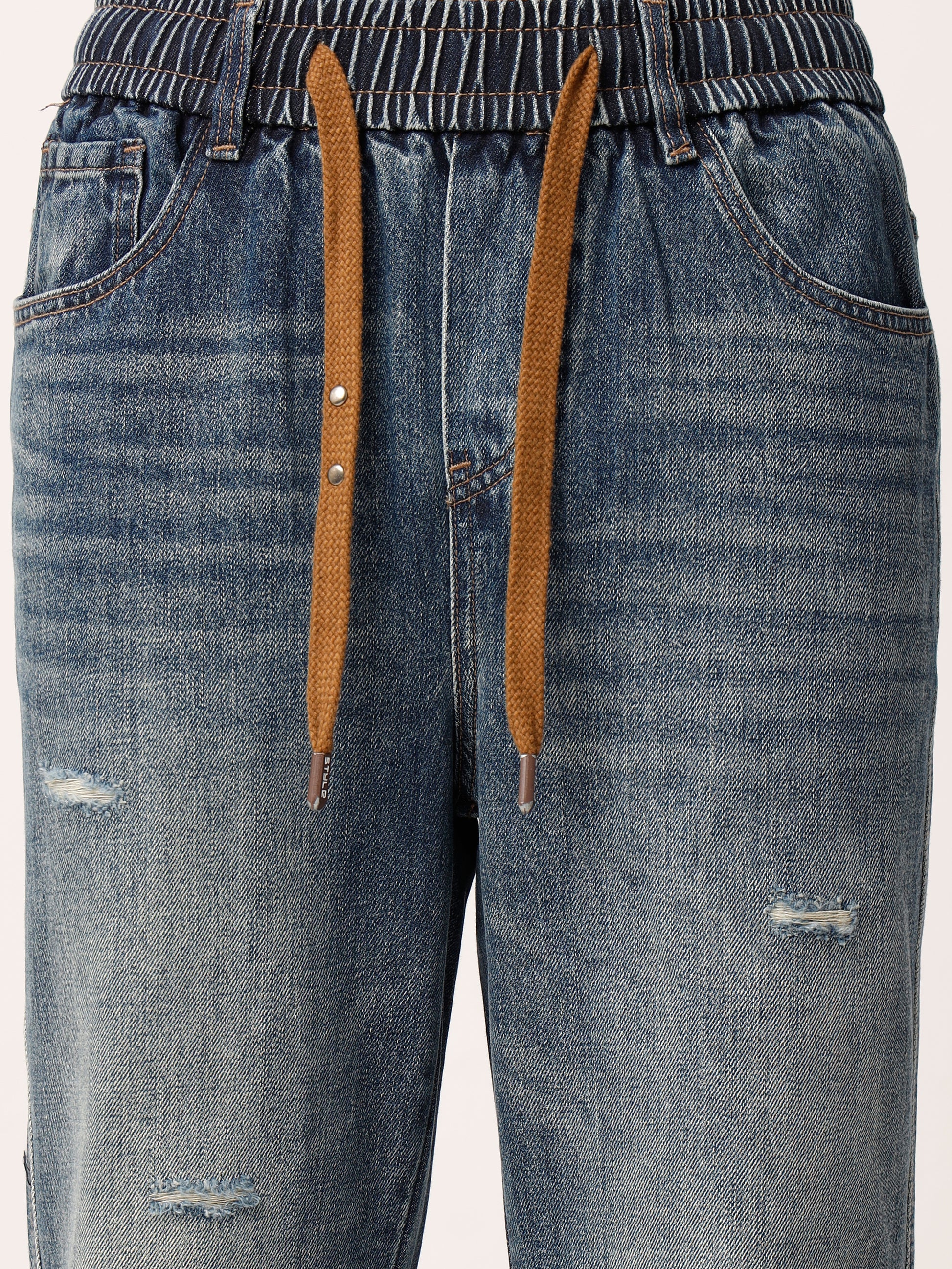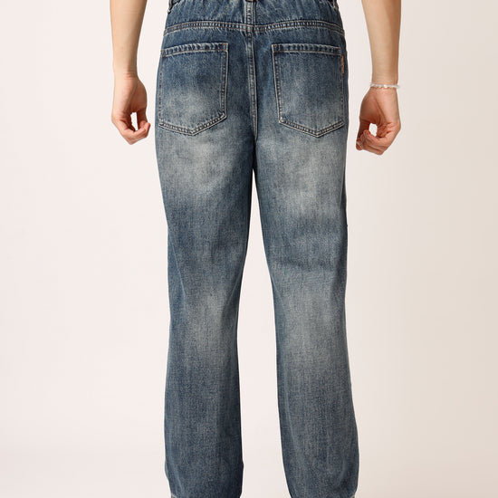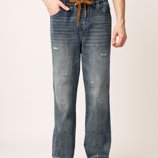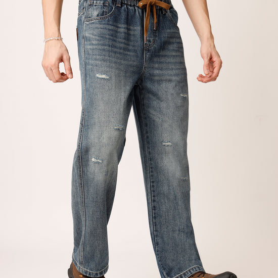 Blue Distressed Straight Fit Jeans